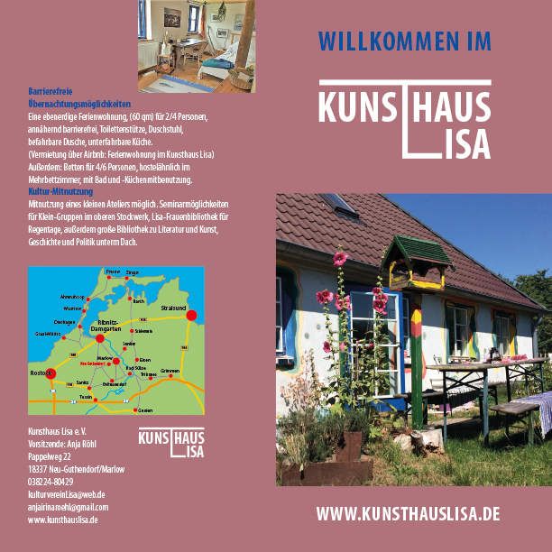 Innenteil des 4-seitigen Flyers für das Kunsthaus Lisa in Neu Guthendorf 2018