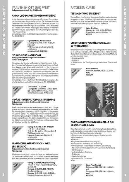 Hier eine Doppelseite aus dem Bildungsprogramm für den Herbst 1996.
