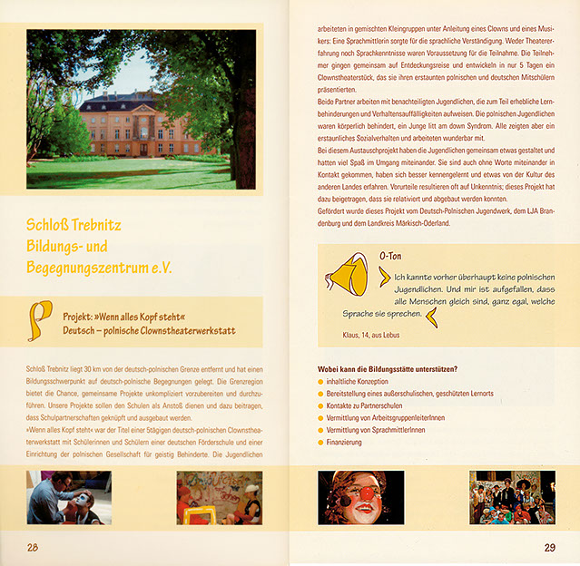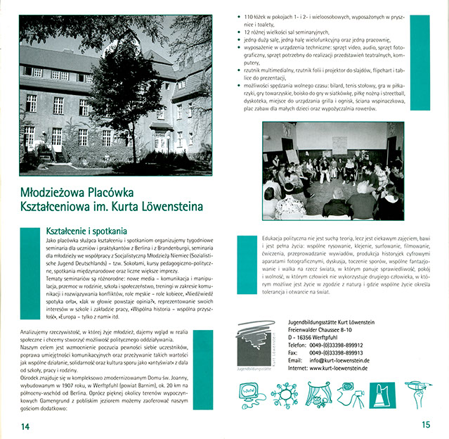 Hier eine Doppelseite zu Jugendbildungsstätten im Land Brandenburg (in polnischer Sprache),