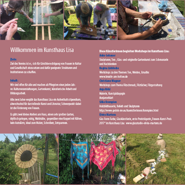Innenteil des 4-seitigen Flyers für das Kunsthaus Lisa in Neu Guthendorf 2018