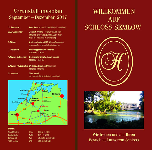 zweiseitiger Flyer zum Veranstaltungsplan auf Schloss Semlow.
