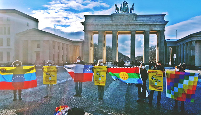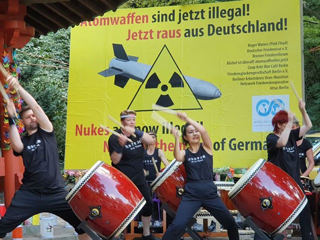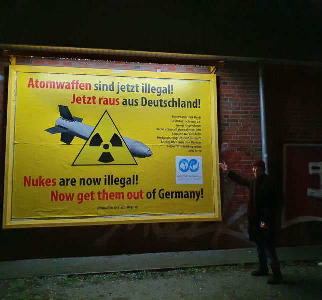 Im Februar 2021 entstand im Auftrag der Friedensbewegung ein Plakat, das inzwischen in den unterschiedlichsten Formaten und Sprachen in ganz Europa zu sehen ist.