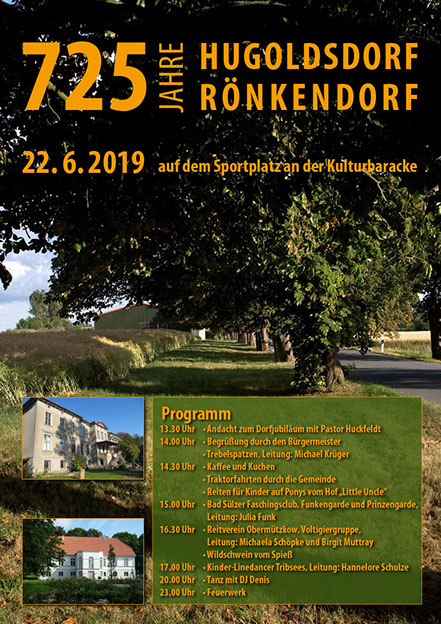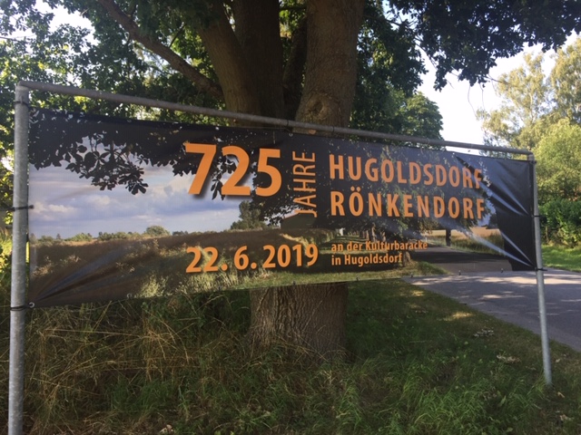 Hier das Banner für die 725-Jahr-Feier von Hugoldsdorf unf Rönkendorf,