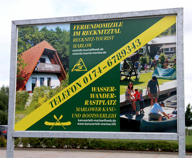 Hier eine Tafel zur Bewerbung der durch Recknitz Tourist Marlow